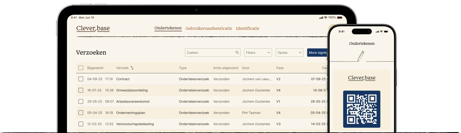 “Met Cleverbase hebben onze klanten het gereedschap in handen waarmee ze binnen ons platform én veilig én makkelijk kunnen ondertekenen.”